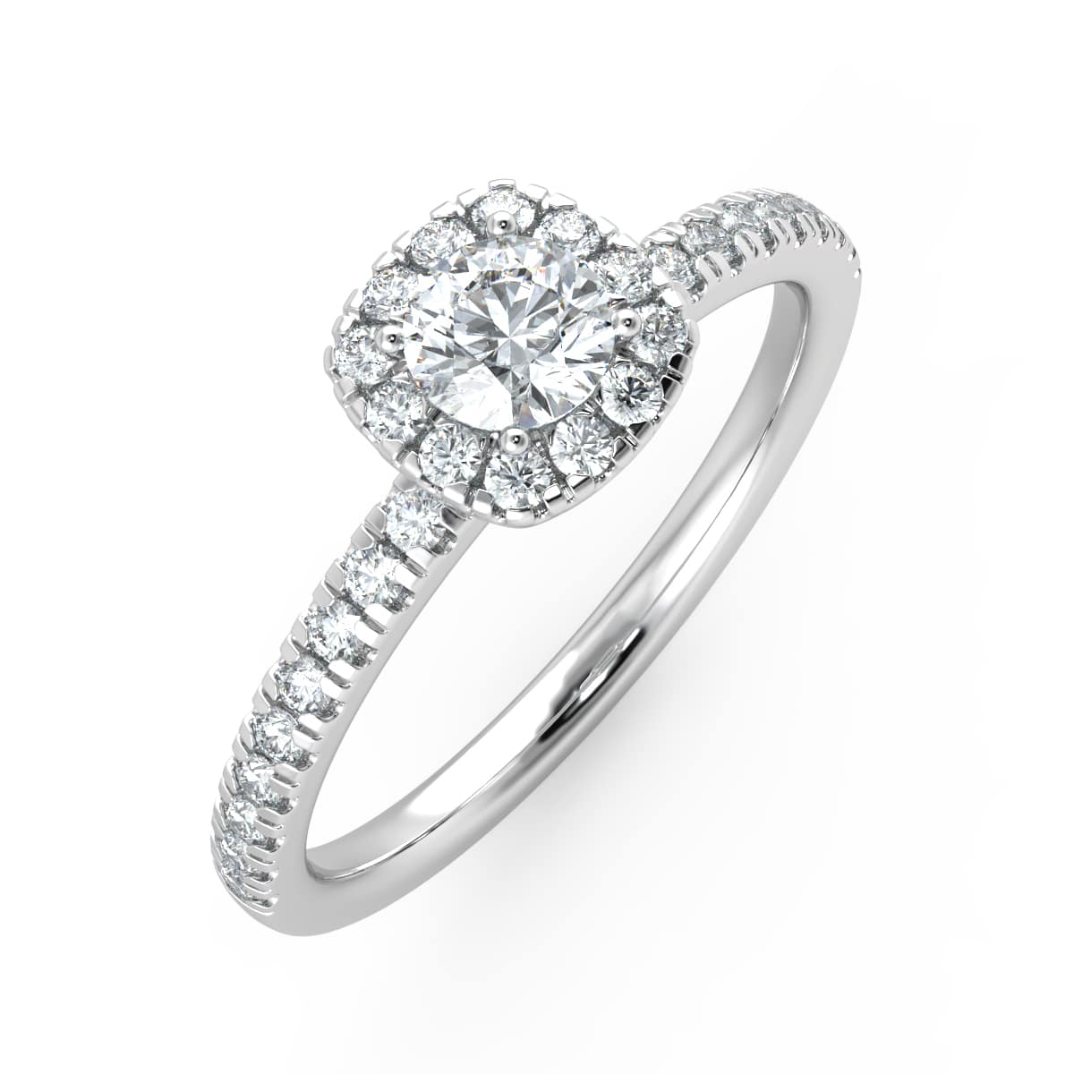| NAME | Cushion Halo Diamond Side Stone Engagement Ring |