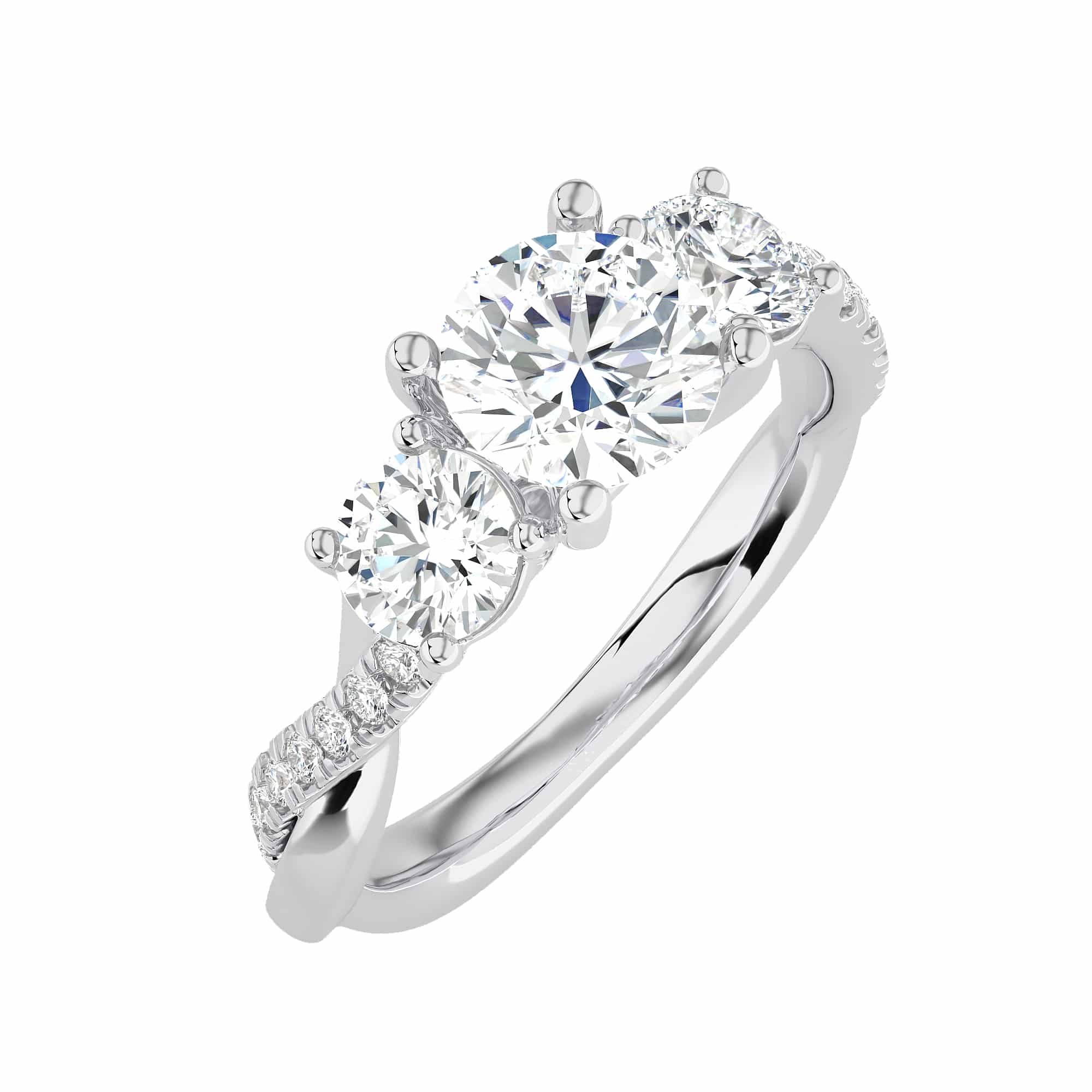 | NAME | Round 3 Stone Twisted Diamond Engagement Ring |