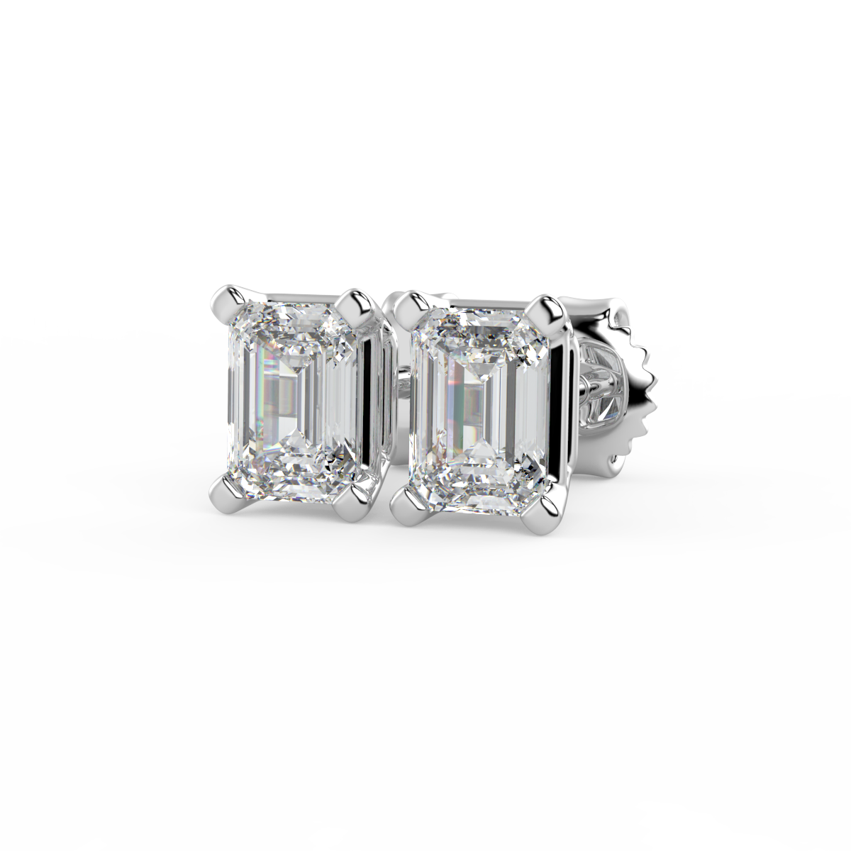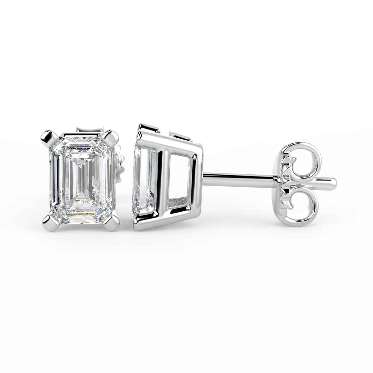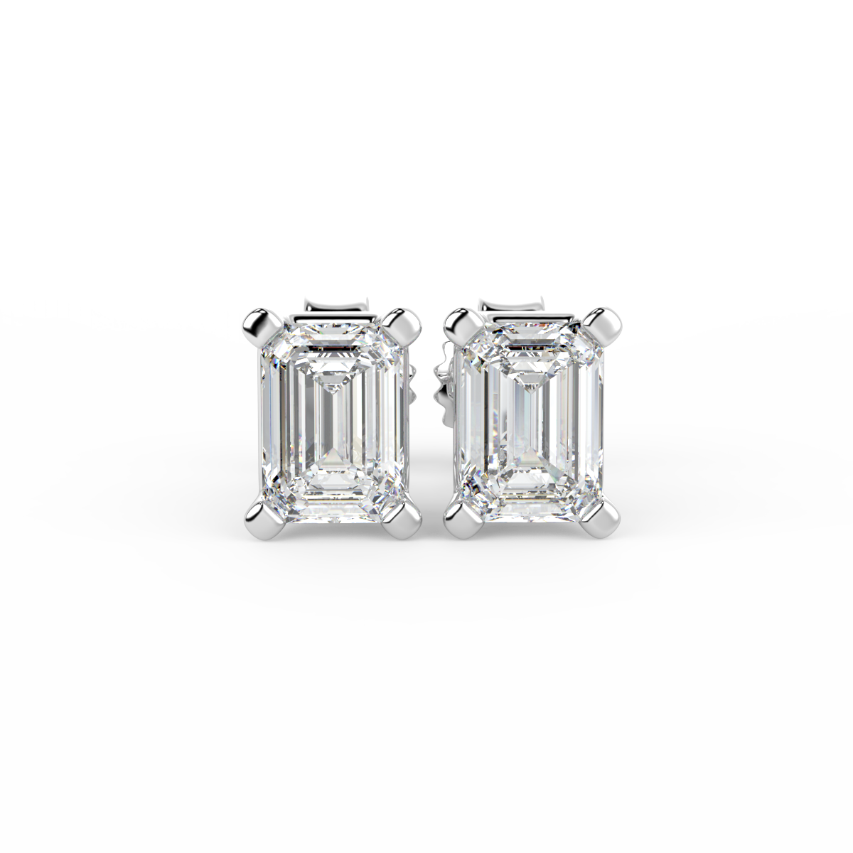 Solitaire Emerald Diamond Flat Prong Studs